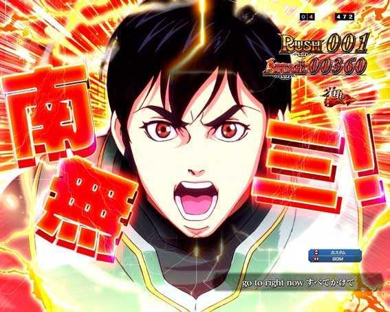 「南無三」の文字が完成すると発展。文字色が赤ならチャンスアップ。