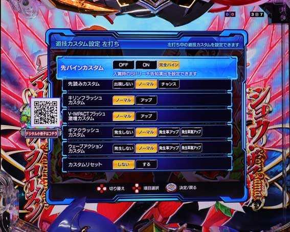 先バインカスタムをONにすると発生。保留入賞時に効果音とともに台枠右側のランプ&パネルが発光すれば信頼度アップ!