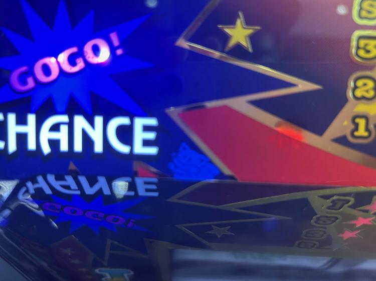前作では、このランプが消灯したり、瞬いたりするプレミアがありましたが、このJUGGLERランプで起こっていたプレミアは全部筐体上部のアーチランプで起こるようになりました。打ってる際は、筐体上部のアーチランプも気にしてみてはいかがでしょうか?