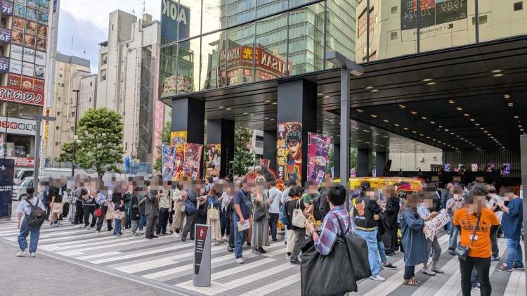 ▲ベルサール秋葉原前の入場待ち行列に道行く人も注目