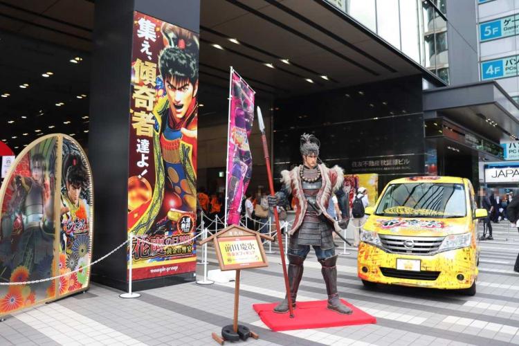 ▲等身大の前田慶次フィギュアやラッピングカー「松風号」もイベントに登場