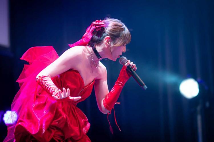 そして再びDaisy×Daisyさんが登場し、発表されたばかりのエンディング主題歌「ReMind」をその場で生ライブ!! 歌のイメージに合わせた真っ赤なドレスで情熱的に歌い上げました。
