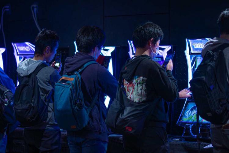 閉会後には会場にて、2025年12月8日に稼働開始予定の新型遊技機『プリズムナナ』の試打体験会が行われ、初めて触れる実機に参加者たちも興味津々。写真を撮りながら熱心に打たれていました。