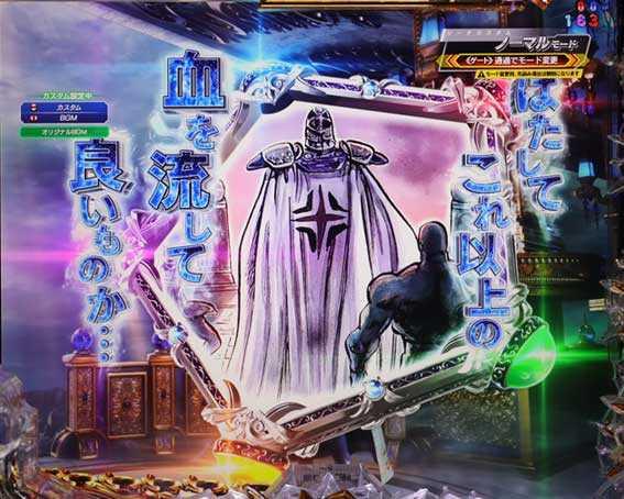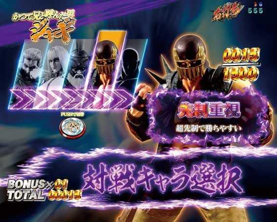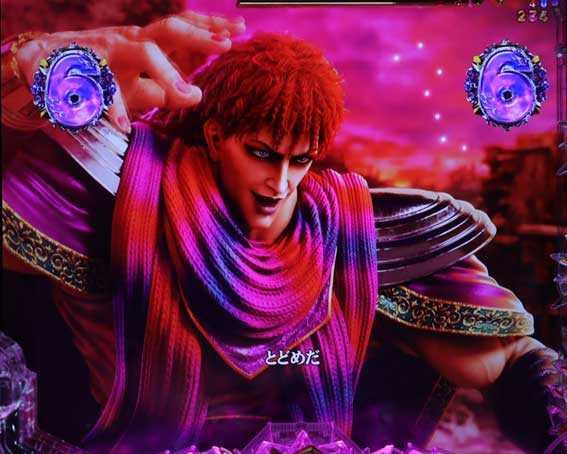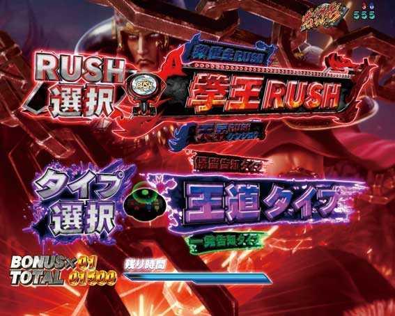 ST10回転消化後に右打ちで「完了」が表示されるとFINAL BATTLEが発生。残保留4個分の結果を1回のバトル演出で告知される。拳王RUSH時は従来通りリュケン以外なら大チャンス。救世主RUSH時はウイグルに期待したい。色変化やアイテム、バトルの展開などチャンスアップは豊富で、1個でも発生すれば大当りにグッと近づくぞ。