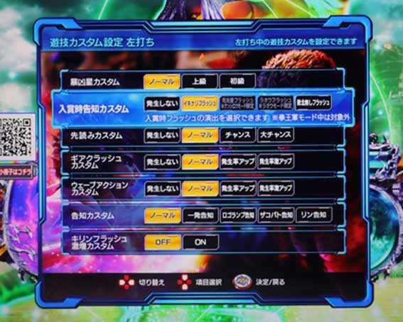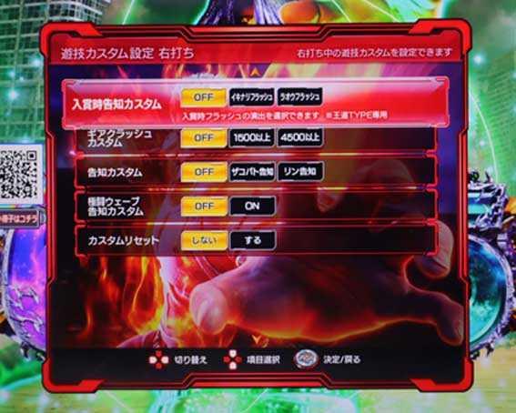 通常時に右打ちで「ゲート」に玉を通すとリーチカスタムのモード変更が可能。モードは3種類で、選択モードによって「神拳BATTLE」の発生確率や信頼度などが変化する。