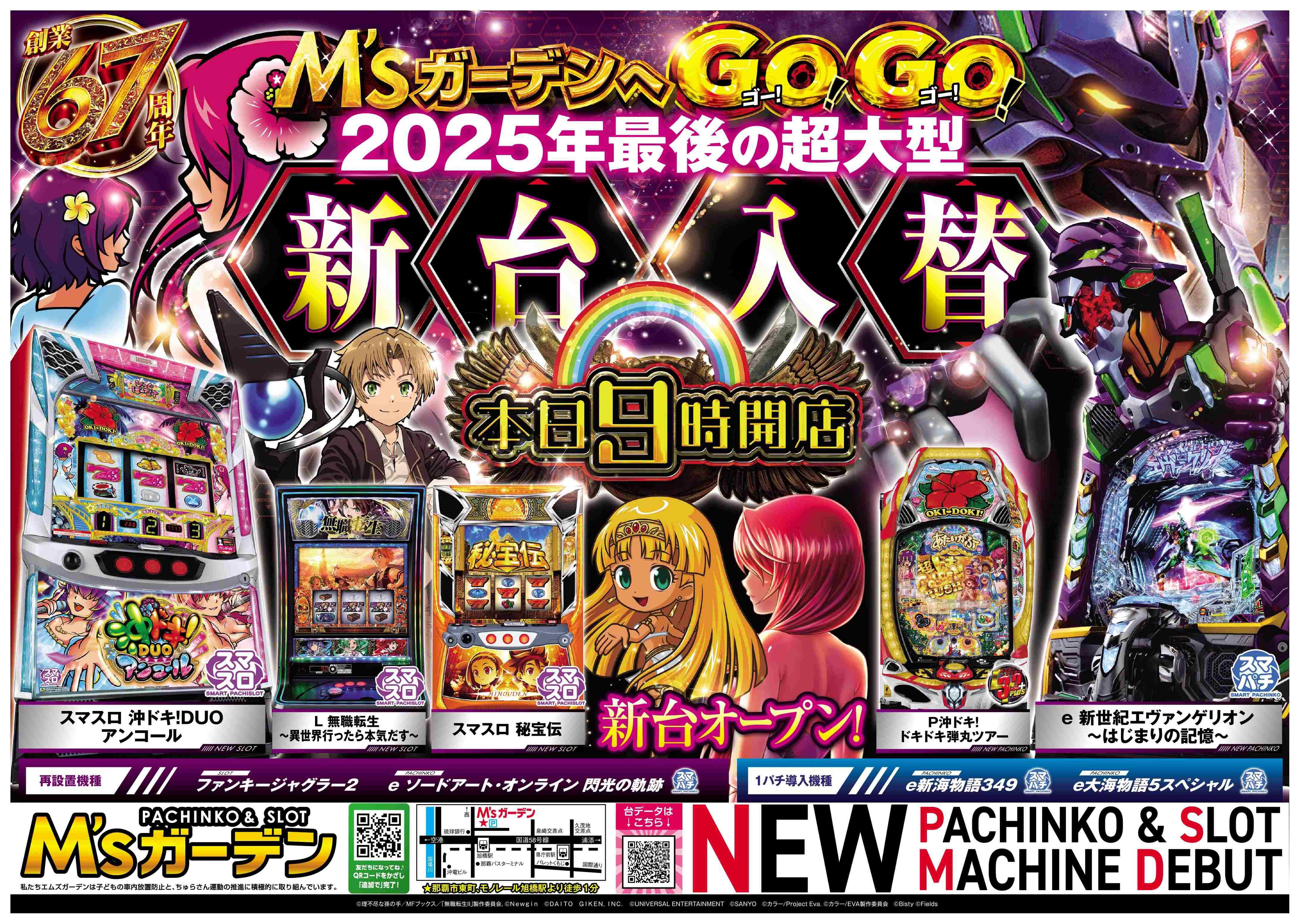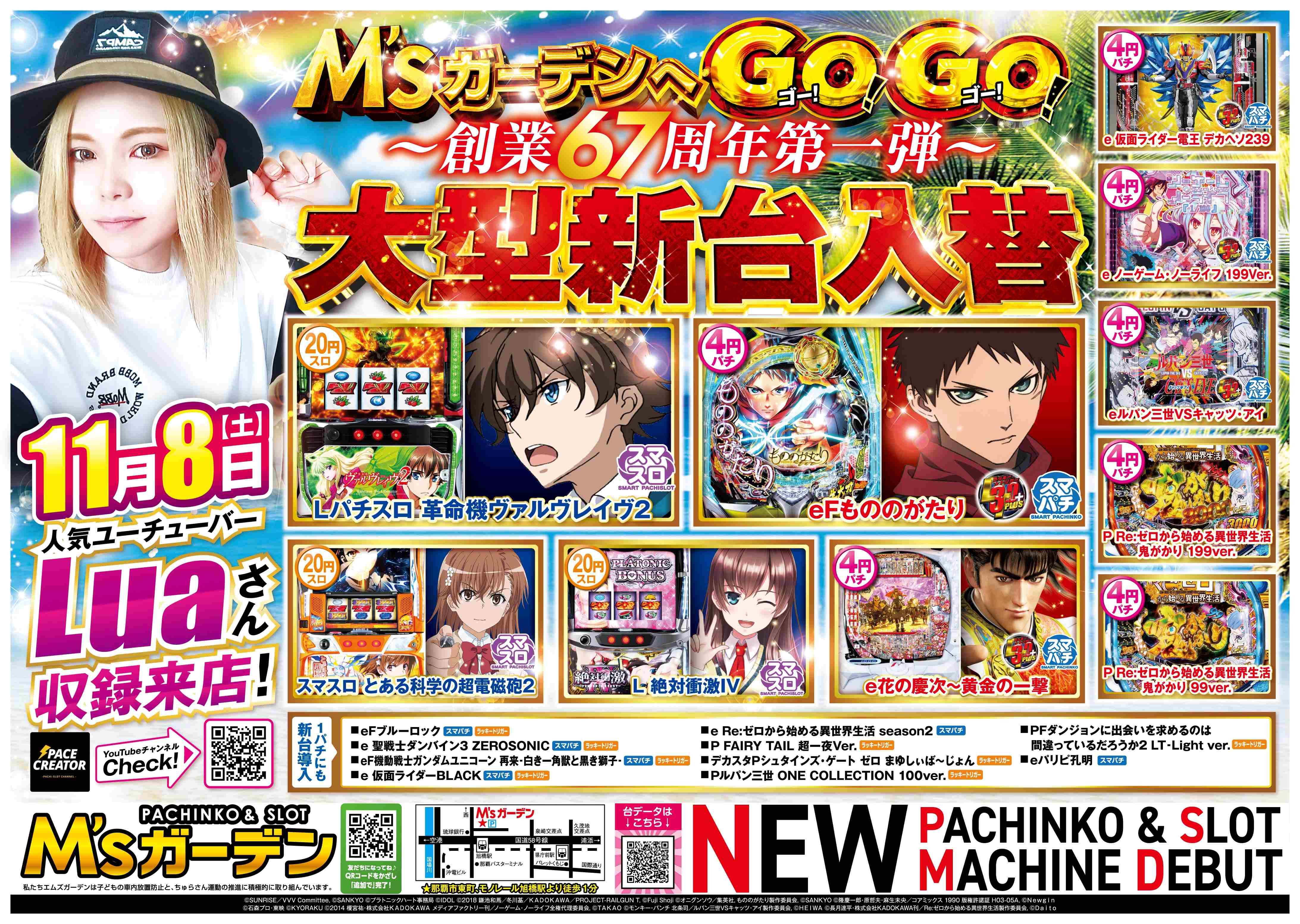 | 特徴 | 進化し続ける!エムズガーデンの最新設備! パチンコ表示機 REVOLA ◇最新表示機◇ パチンコ&スロットベガシアⅡ(各台計数機) 屋内喫煙室 / 屋外喫煙スペース/全台分煙ボード設置 パチンコエアーカーテン設置 ブルーエア設置(世界最高品質の空気清浄機) リフレッシュ・シャワー設置 ホール内空調システムで常に新鮮!きれいな空気♪ 『煙&ウィルス&臭い対策』快適な遊技環境を提供致します♪ 人体無害のアキュテクトで遊技機も常に除菌中! |