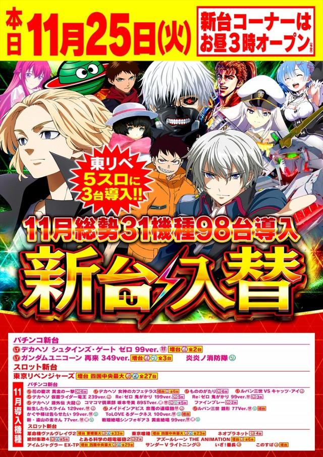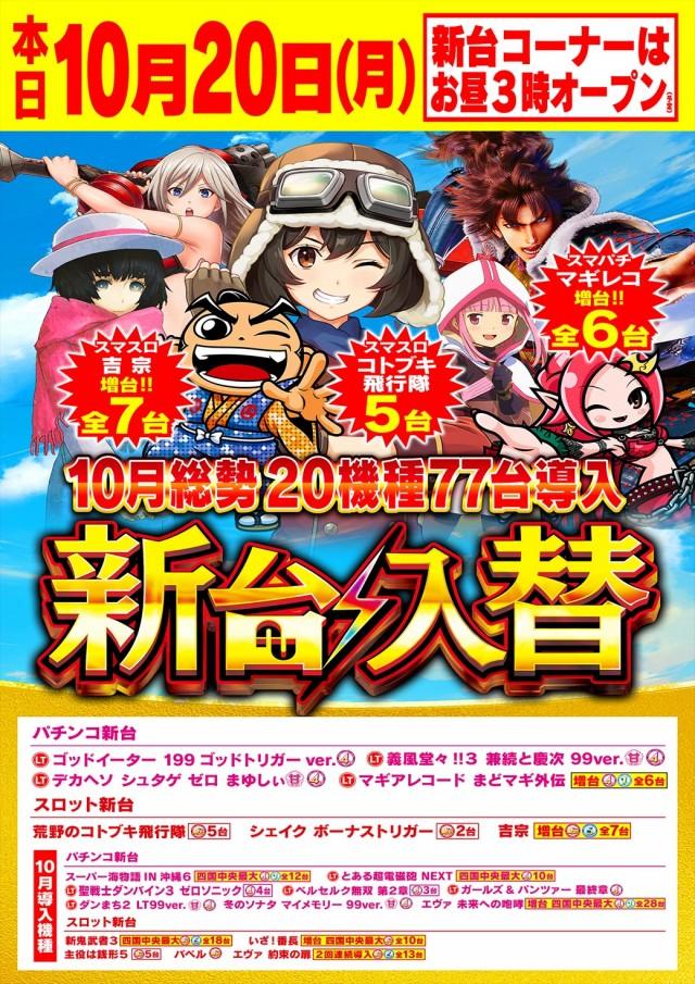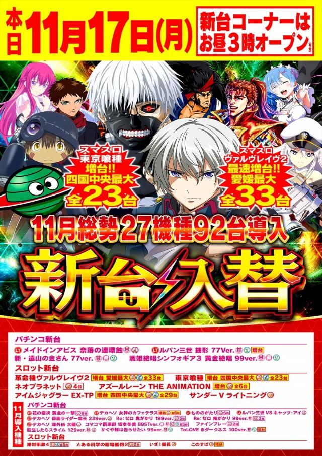 | 特徴 | ★四国中央最大1015台 だからできる 設置機種ラインナップ ★パチンコ・スロット 全台拡大計数設置 ★完全除菌・消臭ルーム ★休憩ルーム コミック3000冊、 全席USBポート完備 ★wi-fi完備 ★マッサージコーナー 女性専用あり ★飲食コーナー |
