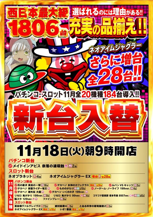 | 台数 | パチンコ1364台 / パチスロ442台 |