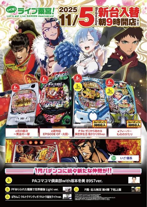 | 台数 | パチンコ281台 / パチスロ349台 |