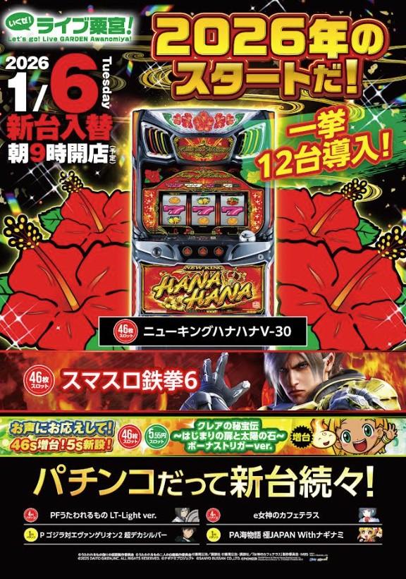 | 台数 | パチンコ281台 / パチスロ349台 |