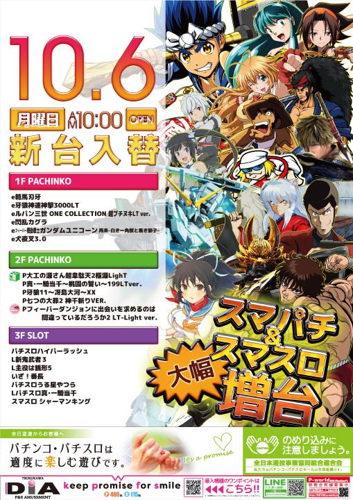 特徴 | 駅からの近さは小田急線沿線NO.1!! 提携駐車場完備でクルマでのアクセスも抜群!! 全館全台抗菌抗ウイルス「酸化チタンナノゾーンコーティング」施工済み!! 3フロア立体構造 →館内は広くて明るい空間!すべてのフロアをエスカレーターで行き来できます。 [ 1F] 4円パチンコ 177台設置 全台パーソナル (多目的トイレ、休憩スペース、コミックコーナー、無料ロッカー、冷蔵ロッカー、喫煙ルーム、セルフカウンター、ポイント加算機) [2F] 4円パチンコ 25台設置 4円遊パチ 45台設置 1円パチンコ 153台設置 全台パーソナル (休憩スペース、喫煙ルーム、コミックコーナー、無料ロッカー) [3F] 46枚スロット 115台設置 (休憩スペース、喫煙ルーム、コミックコーナー、遊技台情報端末『ラズリア』) 無料機種情報サイト「機種モバ」導入 |