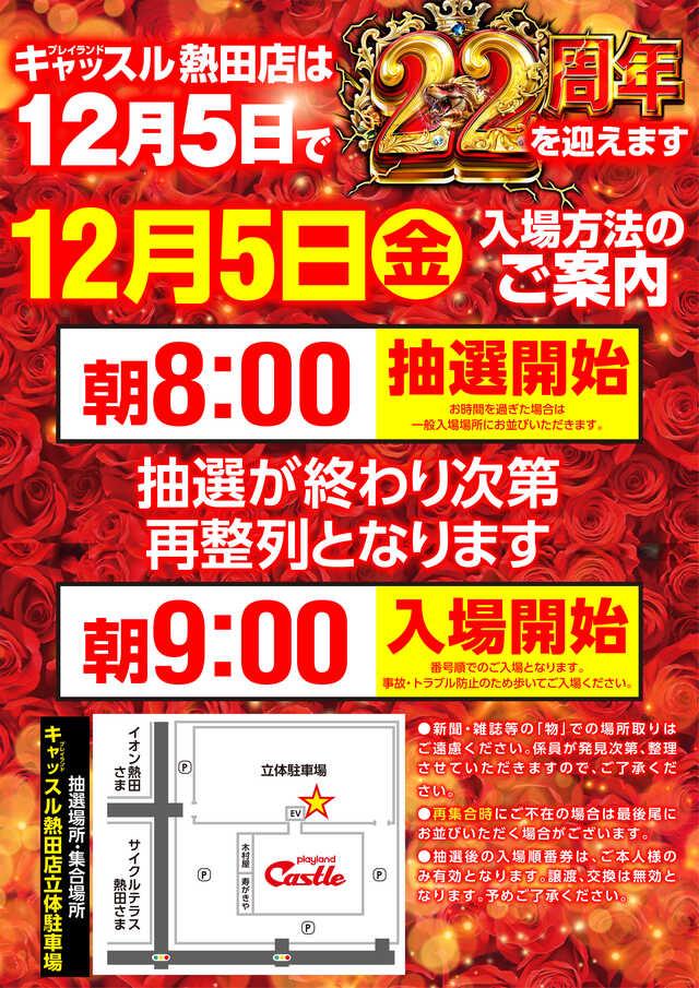 - 周年月間キャッスル旗艦店 12月5日 金曜日 朝9時開店