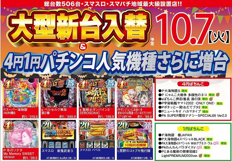 - 10/10【金】大型新台入替済み!AM10時オープン♪