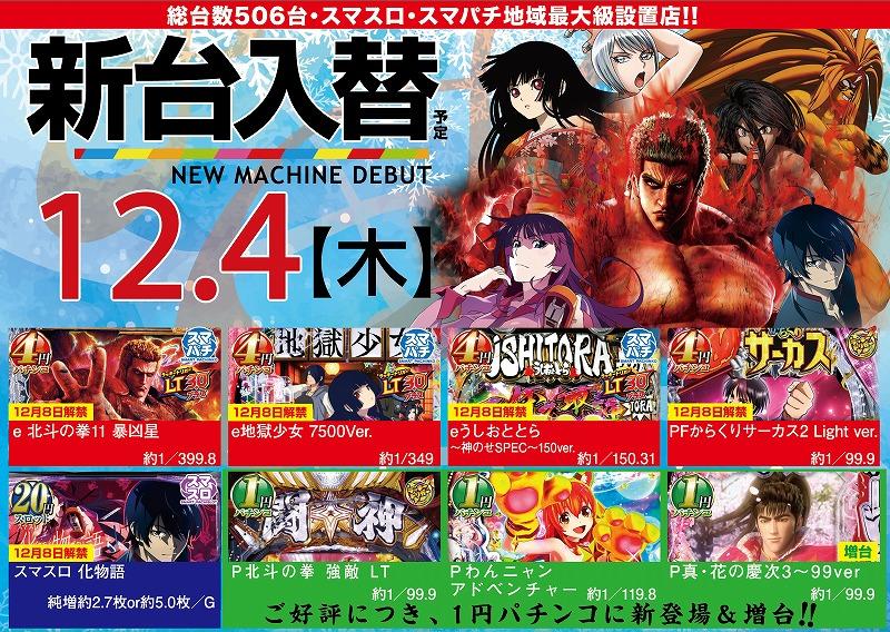 - 12月4日【木】新台入替初日!AM10時オープン♪【予定】