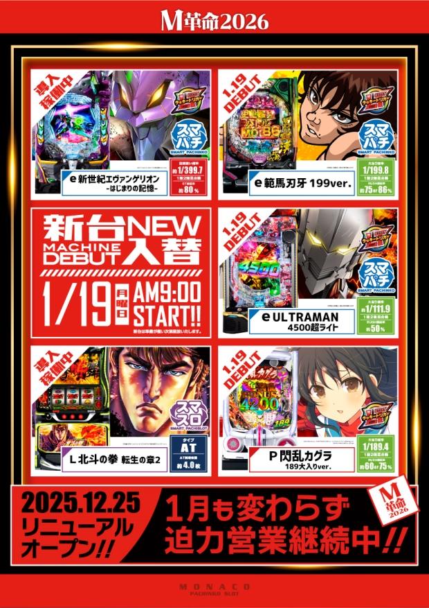 - 1/19(月)☆新台入替☆e範馬刃牙&eULTRAMAN他!!