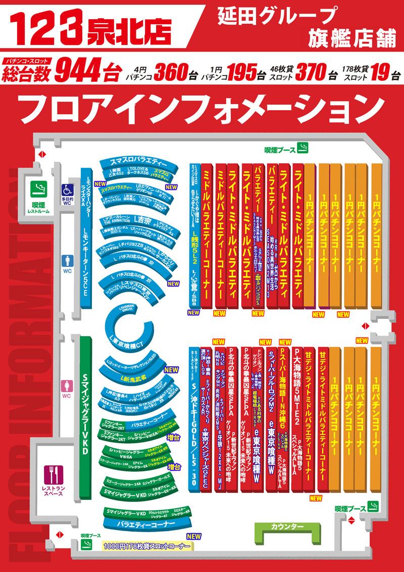 パチ[4], [1], [4円:400台、1円:155台] スロ[20], [5], [46枚貸:356台、184枚貸:19台] |