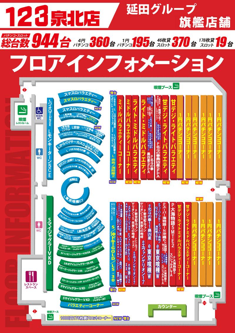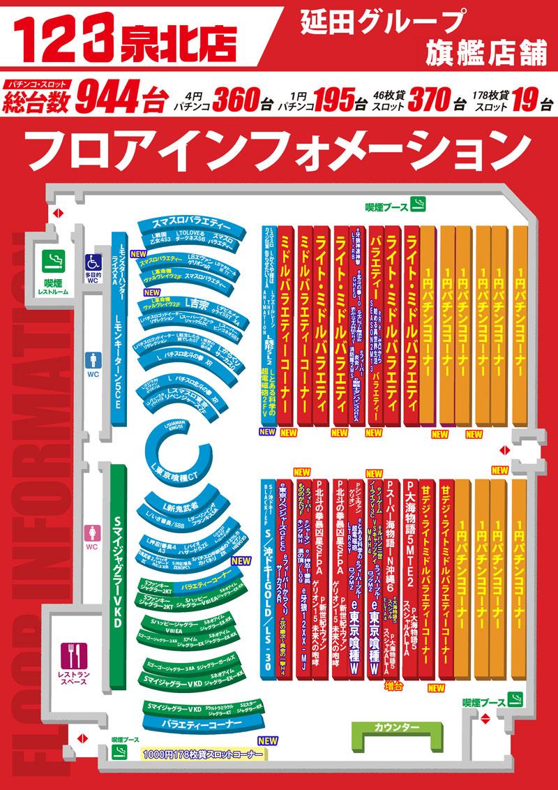| 台数 | パチンコ555台 / パチスロ375台 |