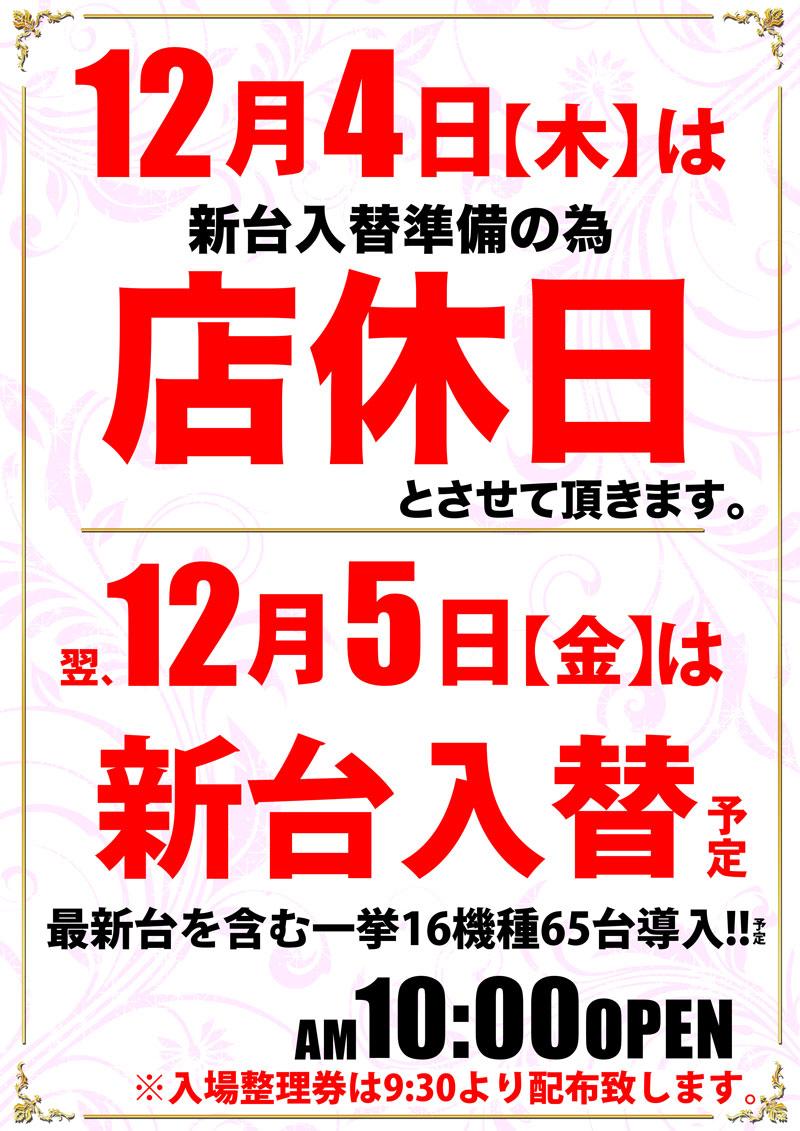| 定休日 | 新台入替前は店休日を頂いております。 |