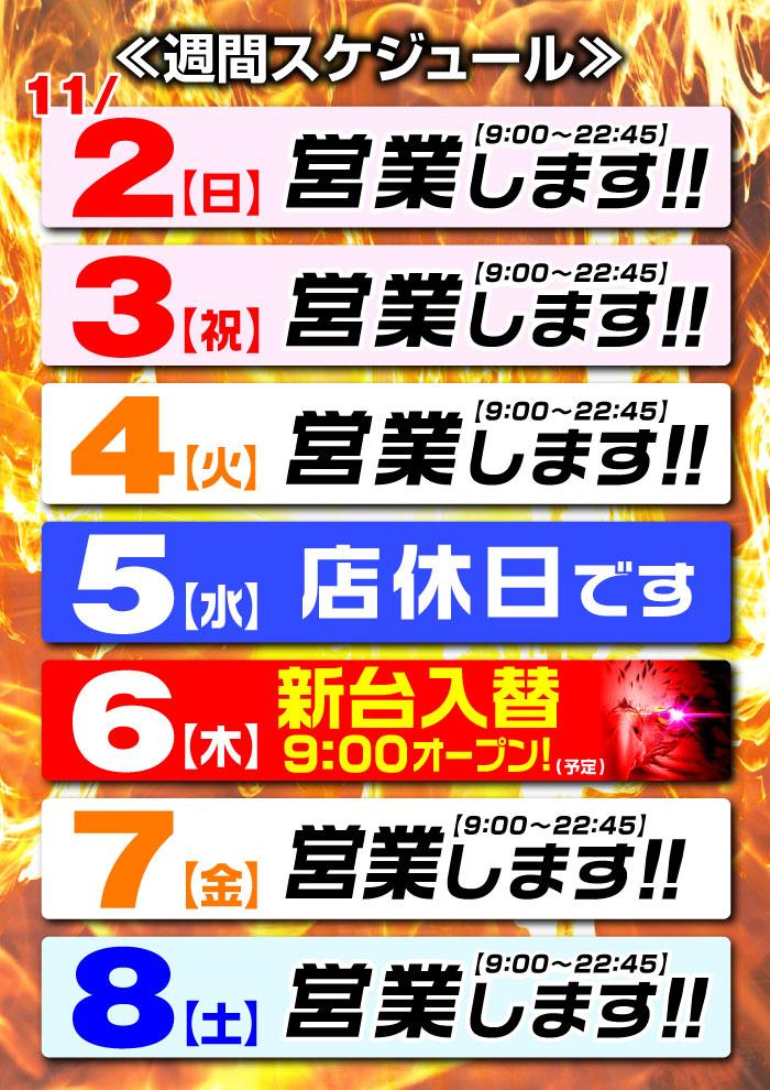 - 9/11【木曜】新台入替!パチンコ⑦機種スロット④機種導入!
