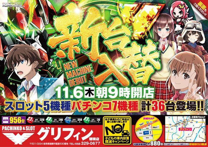 - 11/6【木曜】新台入替!スロット⑤パチンコ⑦機種導入!