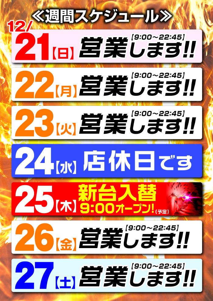 - 12/25【木曜】新台入替!スロット⑥パチンコ③機種導入!