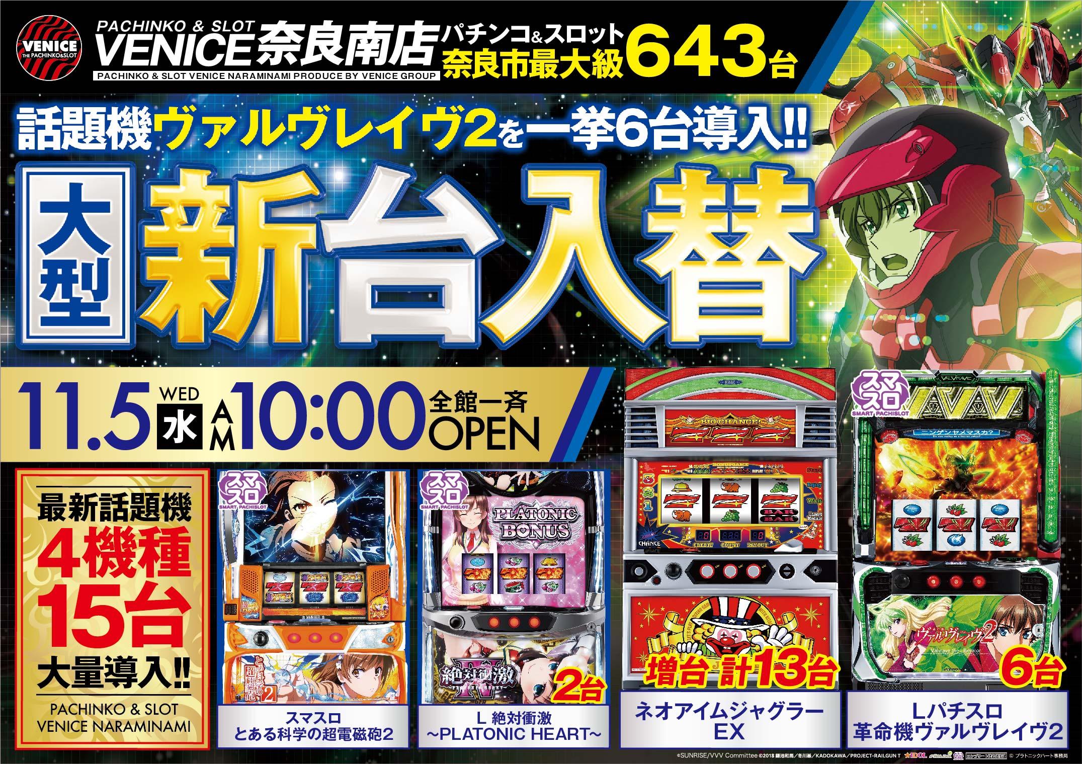 | 特徴 | 奈良市最大級!関西エリアに21店舗展開中のベニスグループ 奈良エリア最新店舗! 最新台&話題機最速大量導入!! |