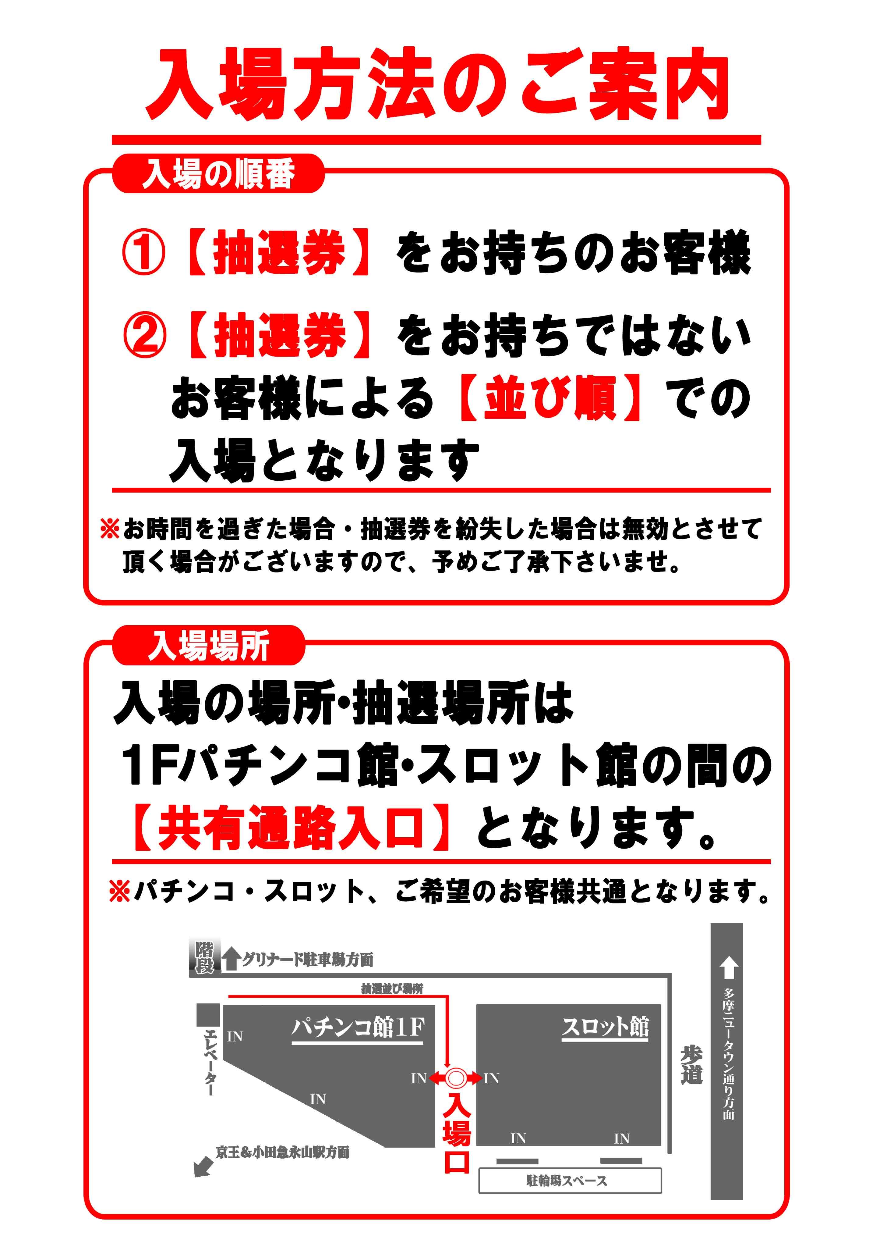| 入場ルール | 9:30までに並ばれたお客様を対象に入場抽選 |