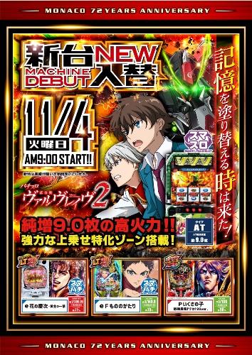 - 11/4(火)[新台入替]Lヴァルヴレイヴ2&e花の慶次&eもののがたりなど導入!!