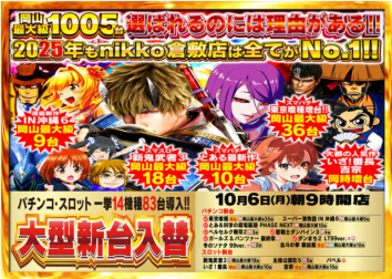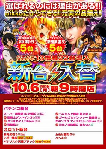 店舗 店舗情報トップ 本日の打ちいこ情報 取材 スケジュール レポート ホール取材 機種 機種情報トップ 新台カレンダー 設定判別ツール 演出信頼度まとめ 新台レポート コンテンツ コンテンツトップ 特集記事 マンガ 動画 お知らせ コミュニティログイン ログイン/会員登録 自由帳 マイページ パチポイント スロッコ パチセブントップ 本日の打ちいこ情報 打ちいこ一覧(プレミアム) 打ちいこ情報 プレミアム一覧 ALL 本日 明日 昨日 7891011 nikko town新居浜本店 愛媛県 新居浜市 2025.10.06 ミスターパチンコ泉大津店 大阪府 泉大津市 2025.10.06 nikko上板イオンタウン店 徳島県 板野郡上板町 2025.10.06 nikko1000四国中央店 愛媛県 四国中央市 2025.10.06 ベニス東大阪店 大阪府 東大阪市 2025.10.06 nikko 真庭店 岡山県 真庭市 2025.10.06 スタジアム2001遠賀店 福岡県 遠賀郡遠賀町 2025.10.07 nikko倉敷店 岡山県 倉敷市 2025.10.06 Super nikko 愛媛県 新居浜市 2025.10.06 日光大球 愛媛県 新居浜市 2025.10.06 7891011 会員登録済みの方はこちらから パスワードを忘れた方はこちら パチスロ新台情報 パチンコ新台情報