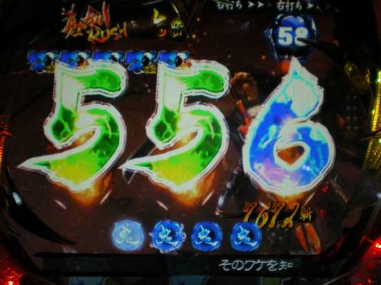 発展した時点で大チャンス。ボタンプッシュごとに信頼度を表わす数値がアップし、最後に青7が出現すれば大当り&蒼剣RUSH突入濃厚!