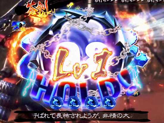ラウンド中の幻魔京バトルに勝利すればV入賞で蒼剣RUSH突入、敗北すると試練ノ刻へ。蒼鬼の武器で勝率が変化。
