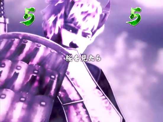蒼剣RUSH中は様々な先読み演出が発生。蒼鬼が威勢を張る、炎が画面を覆う、桜吹雪が舞うなど、いずれも続くほどチャンス。