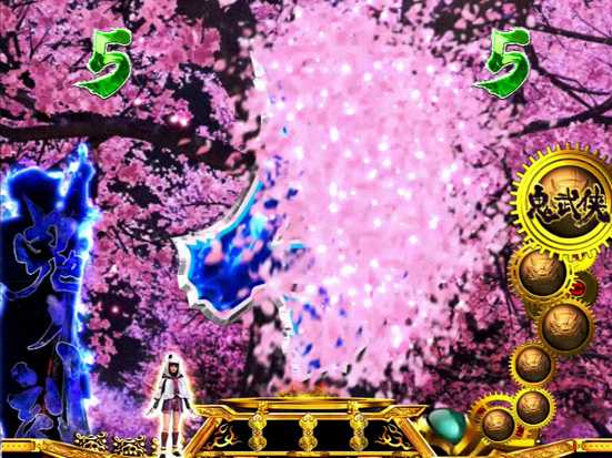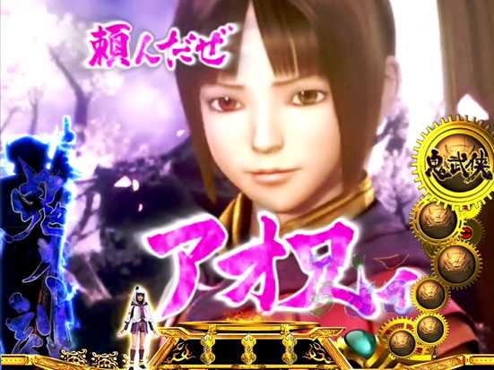 大当りの起点になりやすいのが鬼武侠とともに本機の重要演出である「鬼ノ刻」。ここで鬼力を8000以上溜めて蒼鬼が「覚醒」し、「覚醒リーチ」へ発展するのが大当りの王道パターンといえる。ただし、上記パターンだけでは心もとないので「チェッカー柄」や「桜を見たら、俺を思い出してくれないか予告」の複合、また鬼力9999以上の「極限覚醒」発生に期待したい。