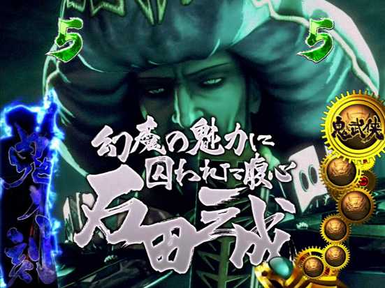 「鬼武侠」などから発展する高信頼度のストーリーリーチ。タイトルやテロップの色が赤や紫に変化すれば、さらに信頼度が高まる。