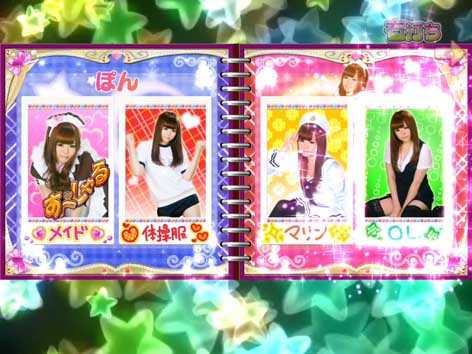 連チャンごとに大当り中の選択楽曲が追加。また、各チームのメイドさんのチェキを4枚獲得しコンプリート画面が表示されると、きゅんきゅんアルバムモードでコンプリートしたメイドさんの写真がコスプレ写真に変化。