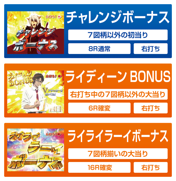 | ・チャンス目ステージ ・中図柄キャラ擬似連(3連) ・歌発展 |