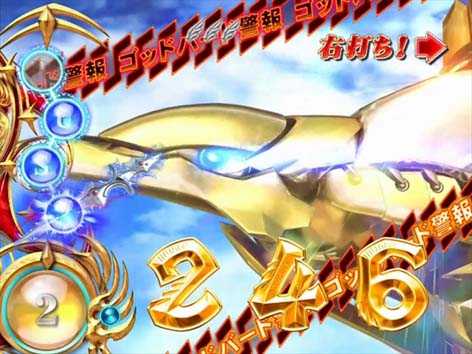大当り直後に発生。ボタンを押してゴッドアロー役モノが可動すれば16R確変に昇格!