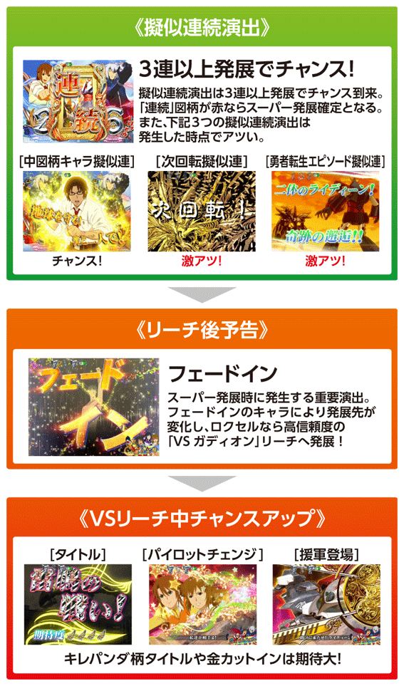 リーチ直後やVSリーチ発展時に発生。キャラにより発展先が変化し、ロクセルなら信頼度の高い「VSガディオンリーチ」へ発展する。