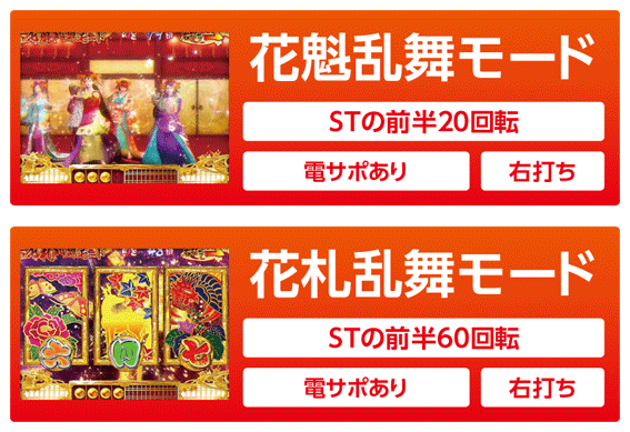 STの前半20回転限定で滞在するモード。先読みや連続演出からの即当りがメインとなる、高速消化ゾーン。20回転を過ぎると花札乱舞モードに移行する。