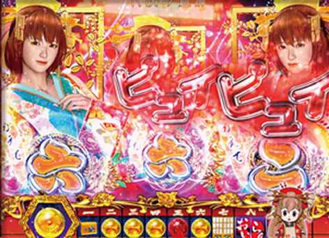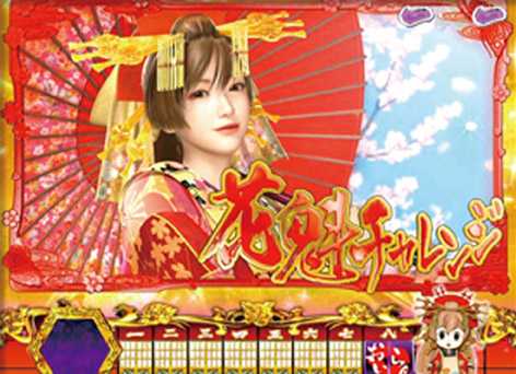 8個目の保留入賞時に発生する演出で、保留内の発展先やチャンスを示唆。花魁ゾーン突入で大チャンス!