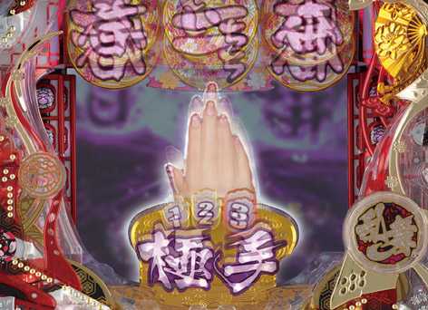 極手役モノ発動で大チャンス。手っちゃんランプの点灯数が多いほど期待度アップ。3つ点灯で激アツ!