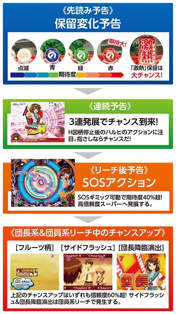 ★キャラ系リーチや団員系リーチ中にハルヒアクション発生で団長系リーチへ発展。