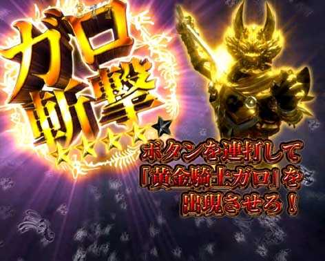 ボタン押しで金図柄が出現すればGARO BONUSに昇格!! ボタン表示が大きければ昇格期待度がアップする。また、金キバが登場することも!?