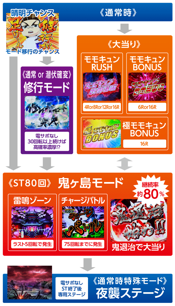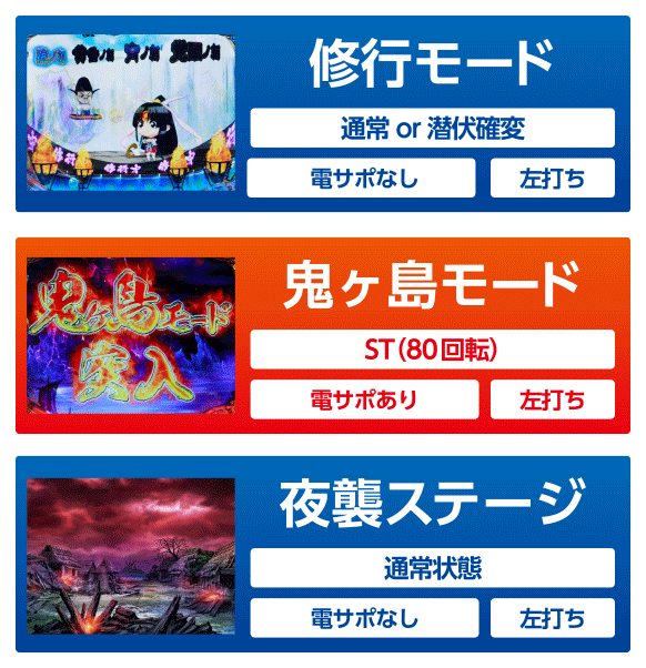 鬼ヶ島モード終了後に突入する演出ステージ。通常状態なのでヤメても問題ない。通常とは異なる演出が発生するぞ。
