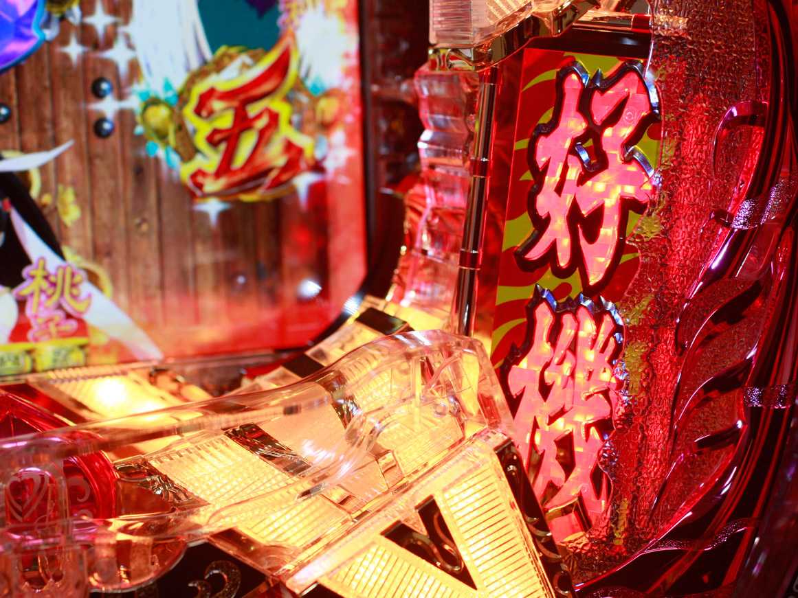 モモキュンRUSHはランクアップボーナスで、4ラウンド1セットで継続演出が発生。鬼退治に成功すればラウンド継続。ラウンド中に発生するエフェクトは、青<黄<緑<赤の順に鬼退治期待度が高い。