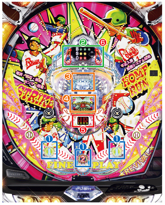 本機には左右始動口と中始動口にそれぞれ1個ずつの保留機能が付いている。役モノ上部のカウント表示の右にあるダイアモンドが保留表示となっており、2塁ランプが点灯すると1鳴き、ホームベースランプが点灯すると2鳴きの保留に対応している。