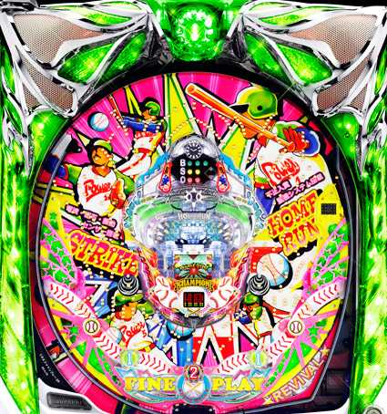 ★ステージの動きのポイントは玉を貯留している時間。高継続ほど回転体の磁石に玉がつきやすいような動作をしており、「HOMERUN」の両脇の磁石でも、自力継続の大チャンスとなる。