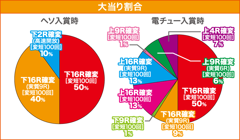 ヘソ・電チュー共に50%を占める本機メインの16R大当り。3・7図柄揃いで突入し、特命アタッカー(下アタッカー)で約1810個の出玉を獲得できる。
