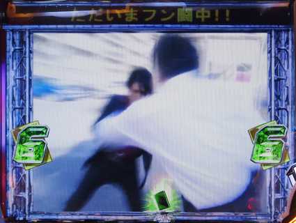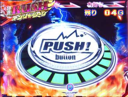 図柄が揃った後は、3・7図柄への昇格を期待してボタンをプッシュ!