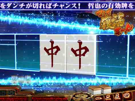 「頂上決戦ボーナス図柄」停止から発生する大当りで、ラウンド中は哲也とドサ健の対決が発生。哲也が和了牌をツモれば雀聖モード突入で、ドサ健の待ち牌を掴んでしまったらリベンジモード突入となる。「再戦」の場合は、途中で牌に映し出されるキャラが哲也なら勝利期待度アップ!